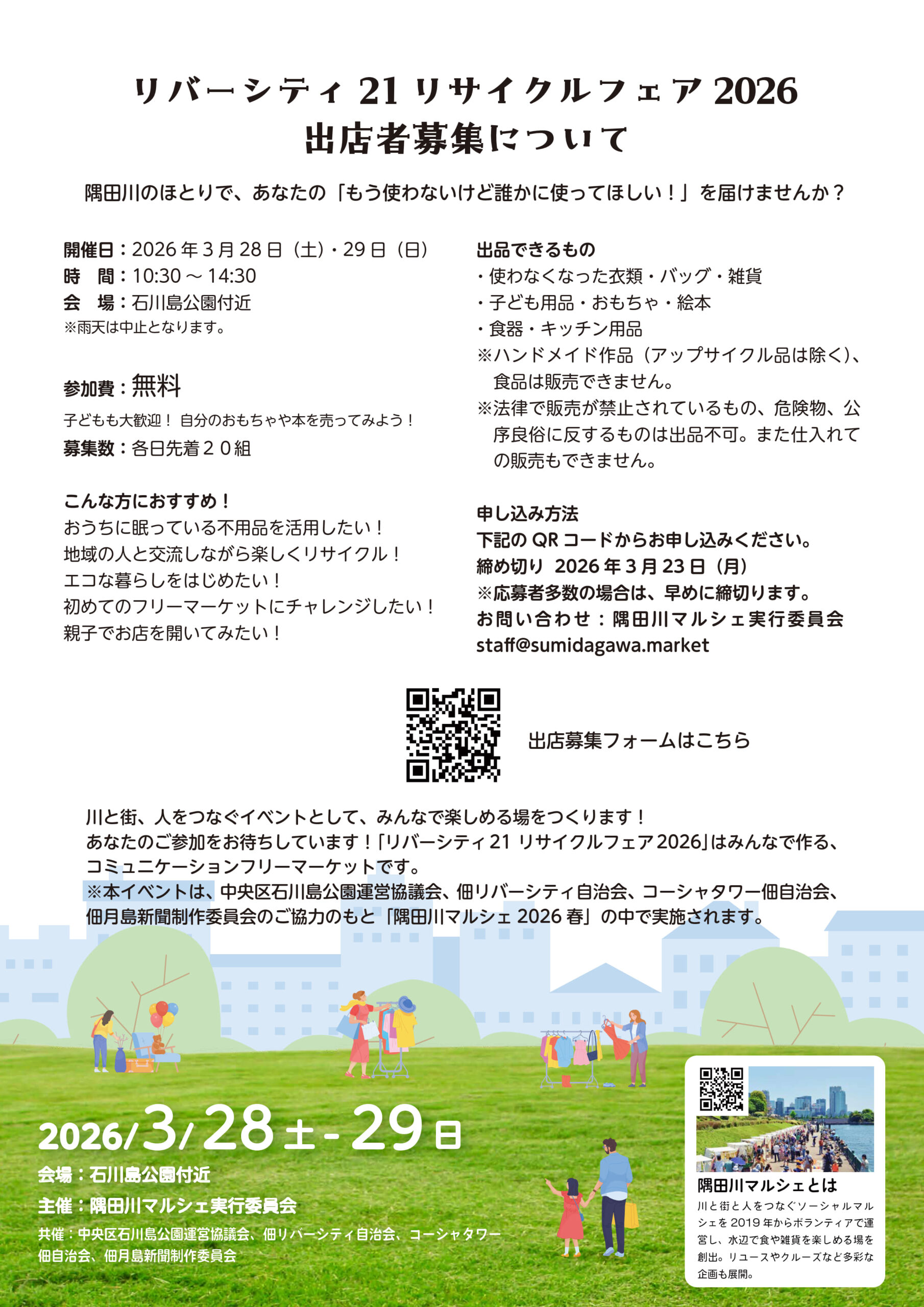 リバーシティ21 リサイクルフェア2026 出店者募集
