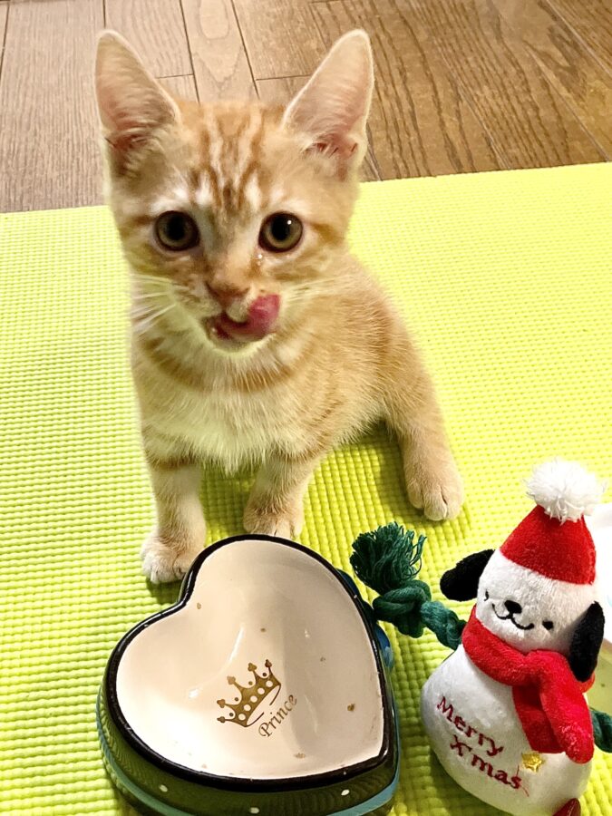 「ゆうのすけ 現在4歳」我が家に来て初めてのクリスマスの画像。生後3カ月で800グラムでした。弱々しかった「ゆうのすけ」も順調に成長して現在7キロになった!(笑)