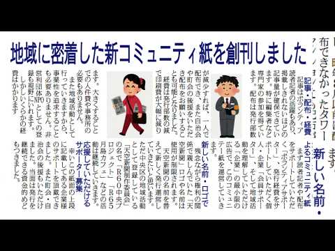 大手デパートを退職後、地域ミニコミ誌・天空新聞の編集員に就任。現役時代のスキルを駆使して取材・執筆・編集・広告募集・印刷手配等一人でこなし、狭い対象エリアの中で月間発行部数をわずか2年半で12000部まで引き上げて来た手腕は相当なもの。商店主などの古くからの地元住民と高層マンション住民との間にほとんど接点がないという都会ならではの問題に対し、両者のギャップを埋めるコミュニケーション手段を提供し、双方から積極的参加を引き出すことに成功した本活動は、水平・垂直両面の広がりを持つ異色の地域活動として独自の境地を開拓。